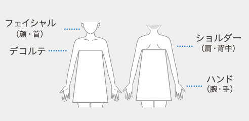 - CPエステ自慢のフェイシャルケアに、ショルダー、デコルテ、ハンドとドレス形状に合わせたケアを惜しみなく行います